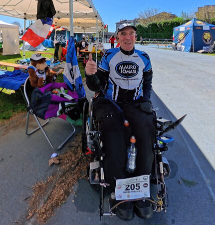 Penso che nessuno con una carrozzina nemmeno con 2 braccia abbia mai fatto una 48 ore! O almeno io non ho mai sentito nessuno che l'abbia fatto. Sicuramente con un braccio solo e con una carrozzina monoguida sono l'unico. Se voi conoscete o sapete di qualcuno che abbia fatto una 48 ore in carrozzina scrivetemelo...