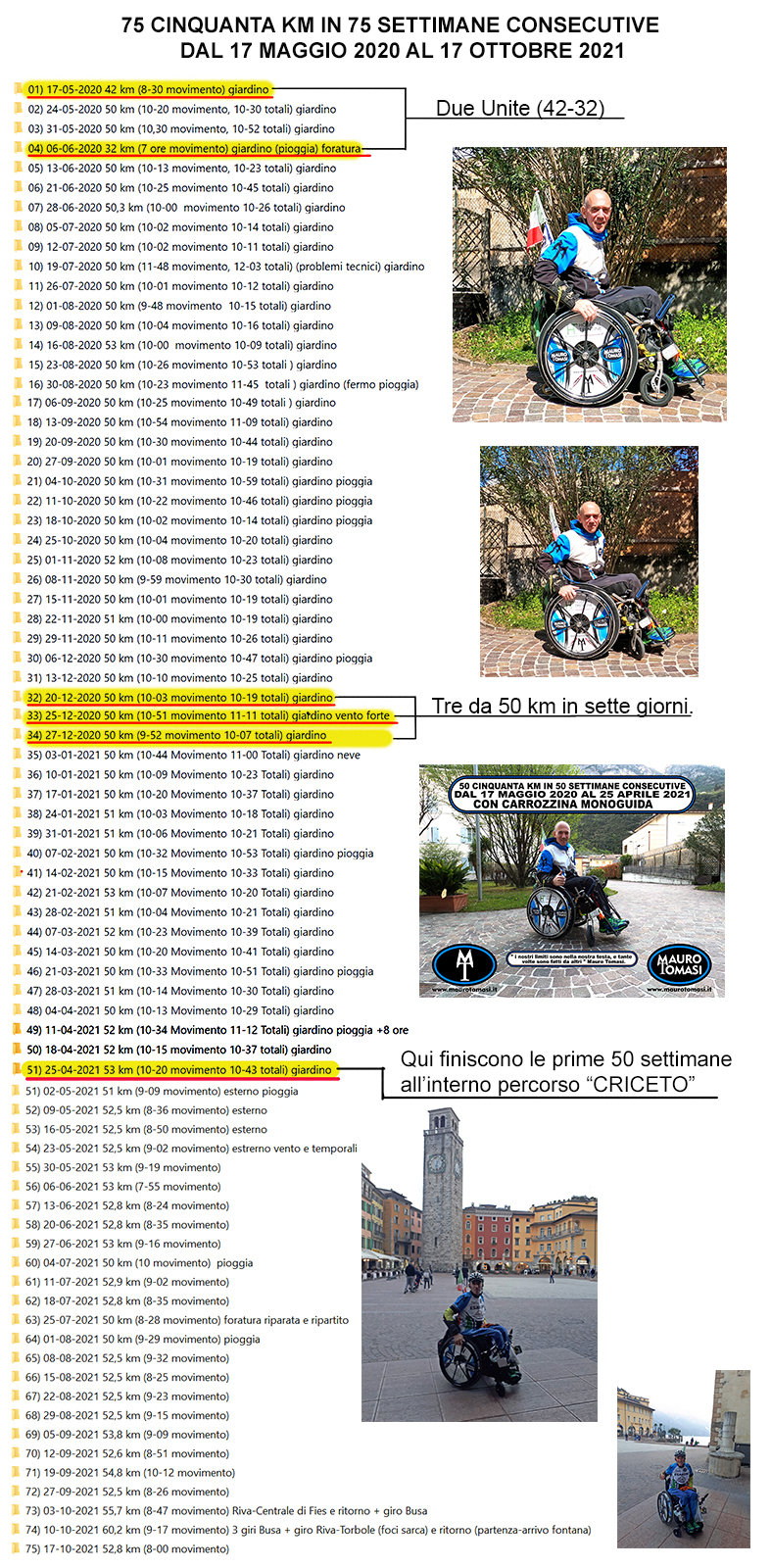 Mauro Tomasi 75 cinquanta km in 75 settimane consecutive con carrozzina monoguida
