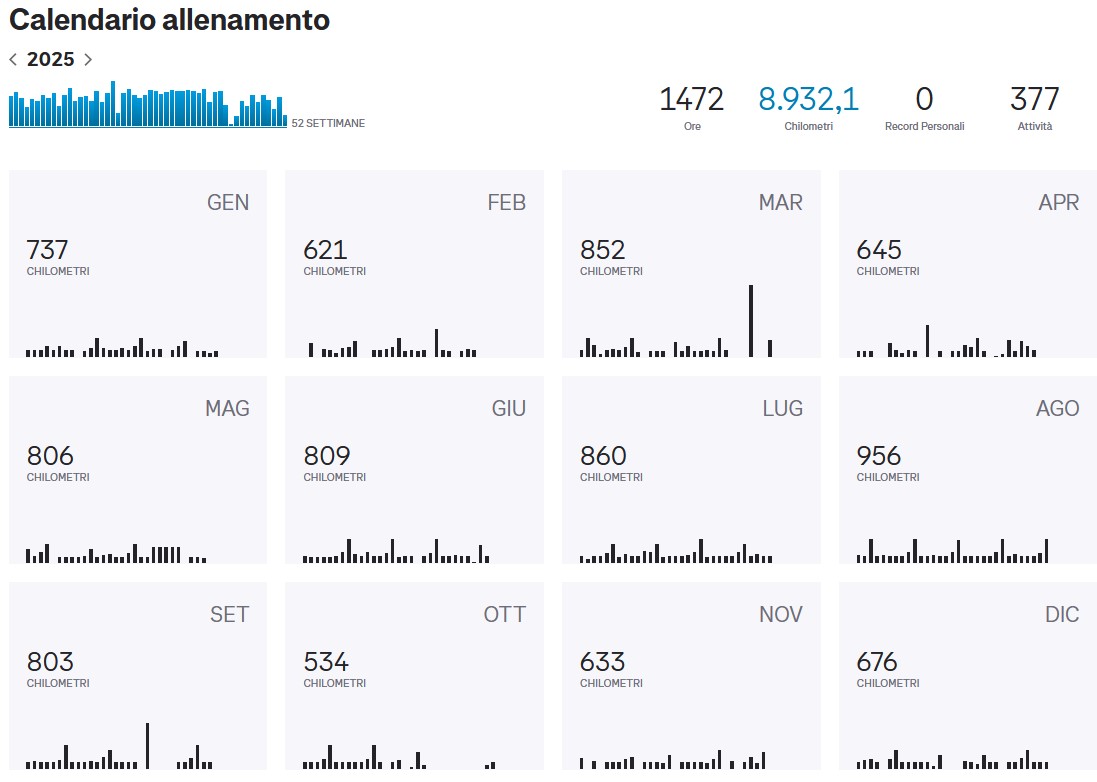 31 dicembre 2025 ho finito l'anno SPORTIVO con 8932 km.