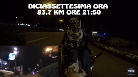E a quel punto!?..il mio obiettivo era di fare 15 ore!, 5 giri da 3 ore!…ma nonostante tutte le mie pause, per problemi vari di video e fisiologici, ero arrivato prima delle 15 ore prestabilite!…non potevo fermarmi! a 14:22!, e allora ho deciso!...DI FARE IL SESTO GIRO!, VIA!!..