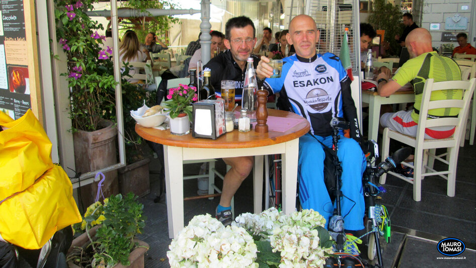...all 6,2 km abbiamo attaccato la “corda traino” una mia invenzione sulla mia carrozzina...