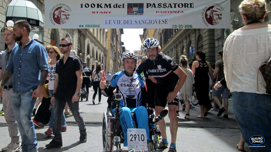"Ormai è giunta l'ora della partenza dei DIVERSAMENTE ABILI.....in HANDBIKE!" ha detto l'anziano con il cappello da Passatore...."secondo me non sa nemmeno cosa sono!" ma va bene!...